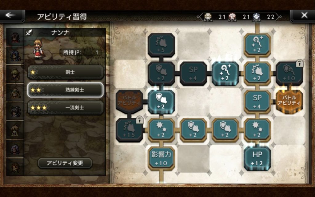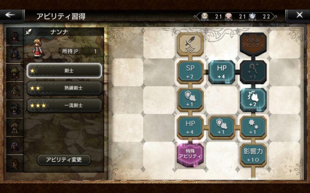 22レベルまで上げることでジョブポイントが3段階目の影響力+10を取得して