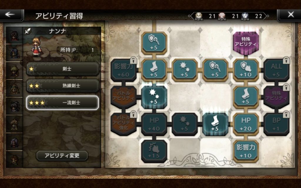キャラクターによって22まで上げないと最後の影響力が取れないことがあります。