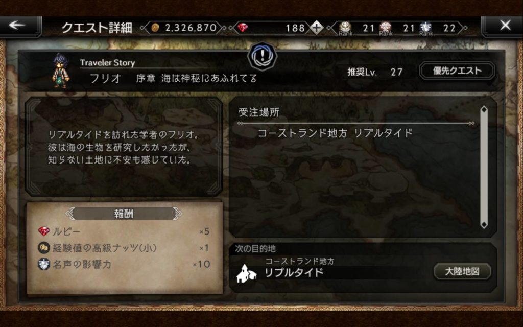 行き詰まるまでは、メインストーリーを優先的に進めましょう。