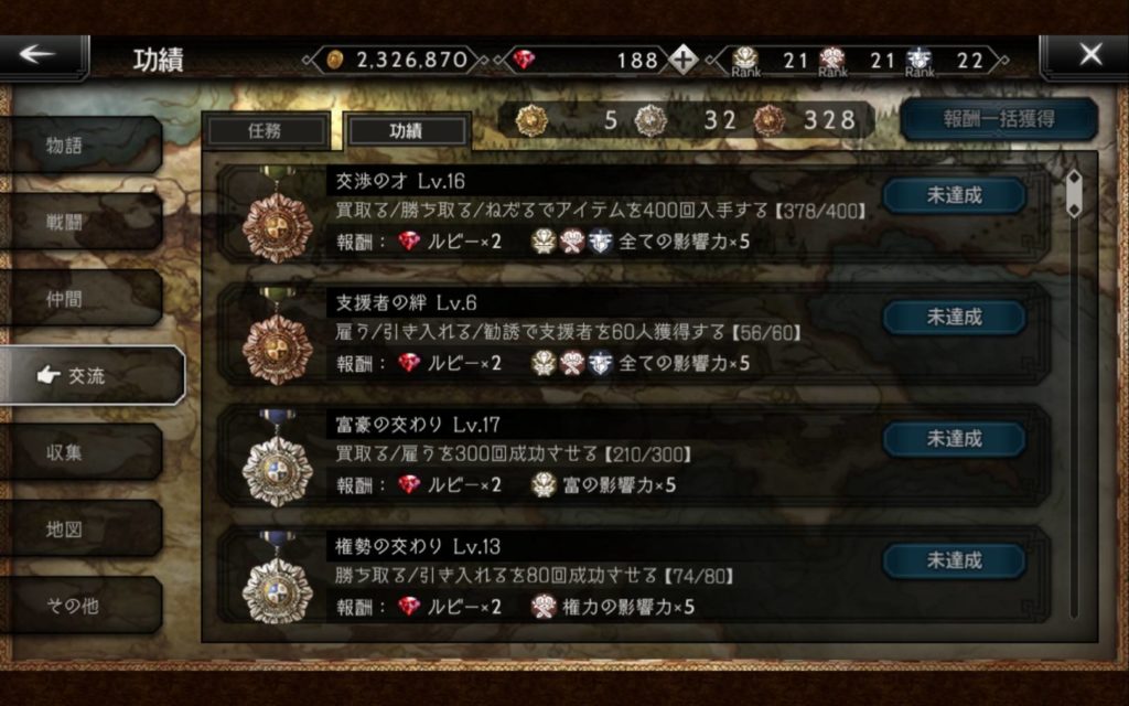 メインストーリーは各章クリアするごとに100以上の影響力を取得可能です。