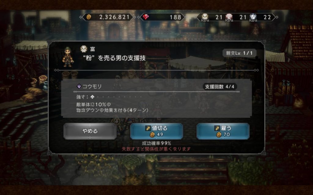 序盤でもヴァローレにいるおじさんとか値切ると49リーフで雇えますw