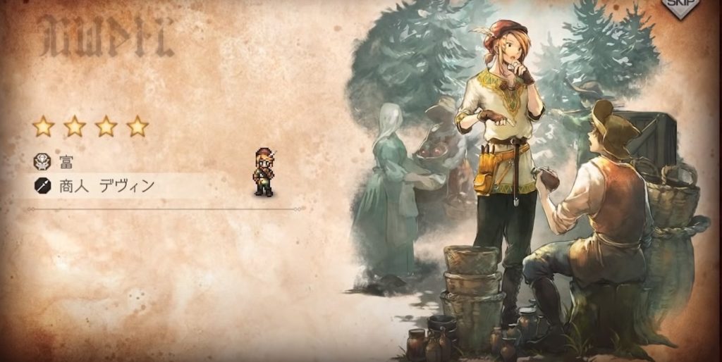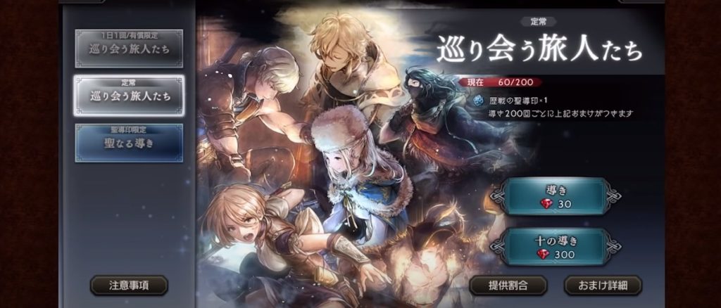 レアリティを上げるのに素材が必要なため、あらかじめレア度の高い旅人を引きたいですね。