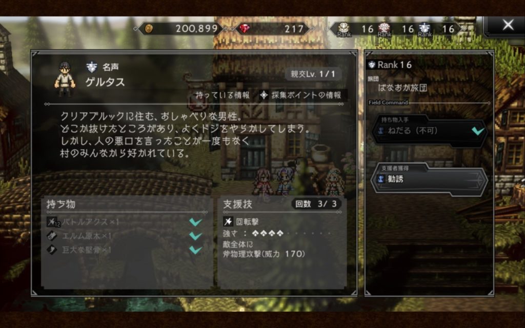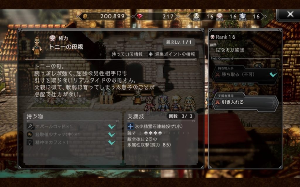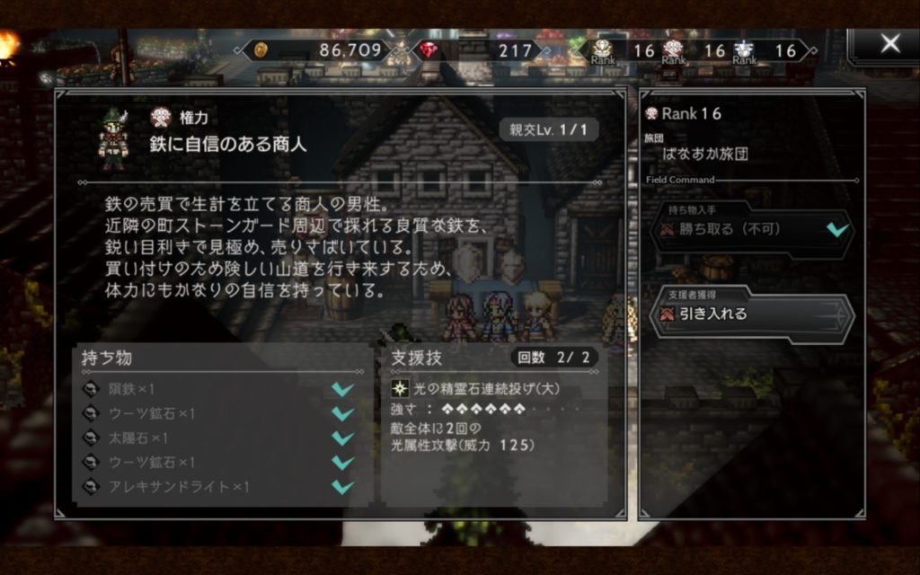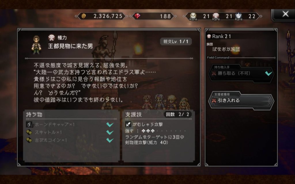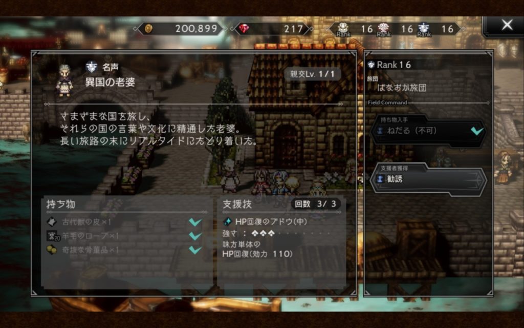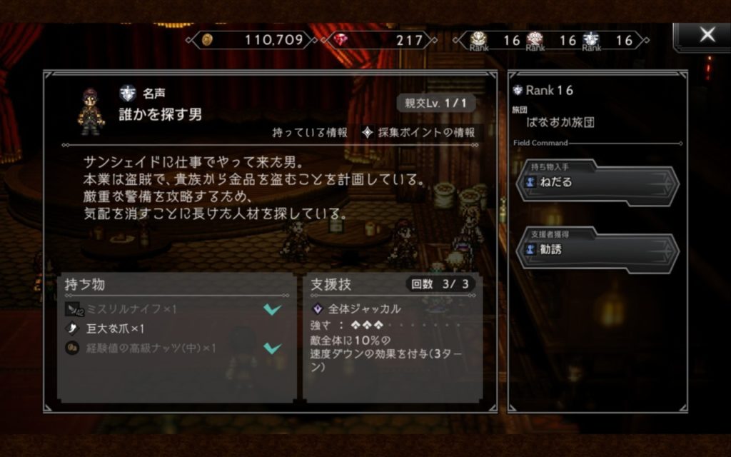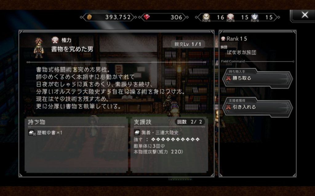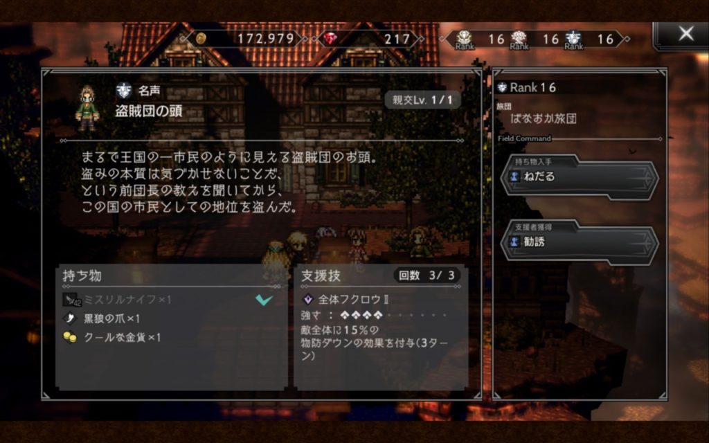 オクトパストラベラー大陸の覇者のフィールドコマンドによって