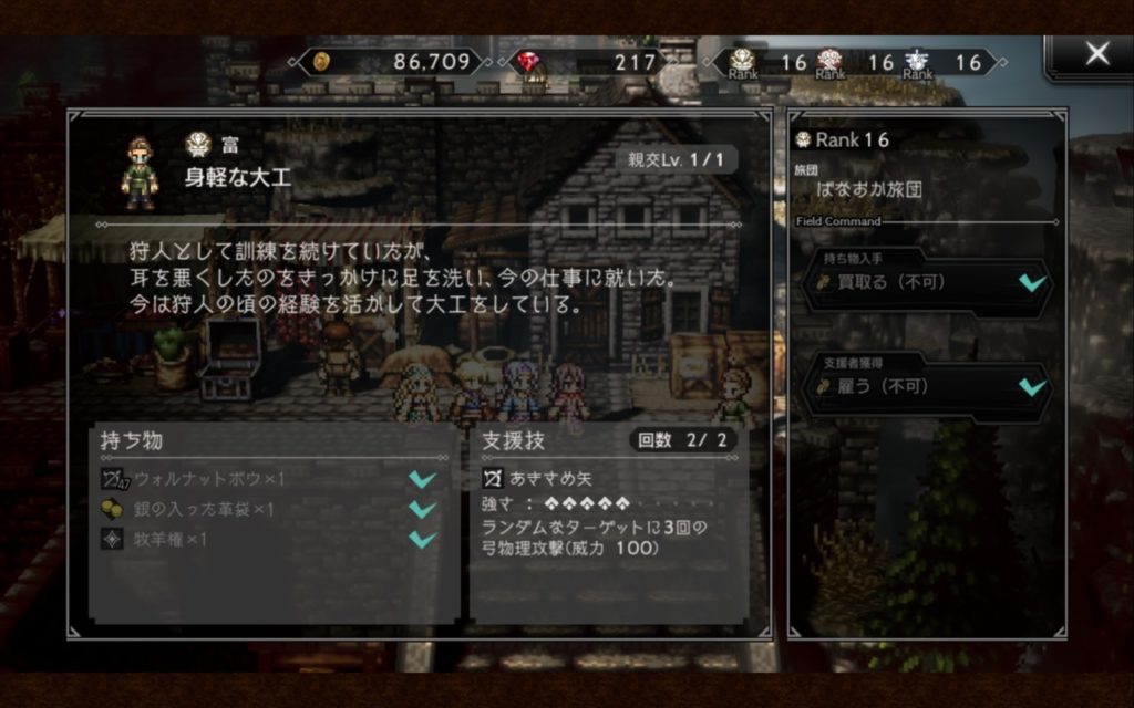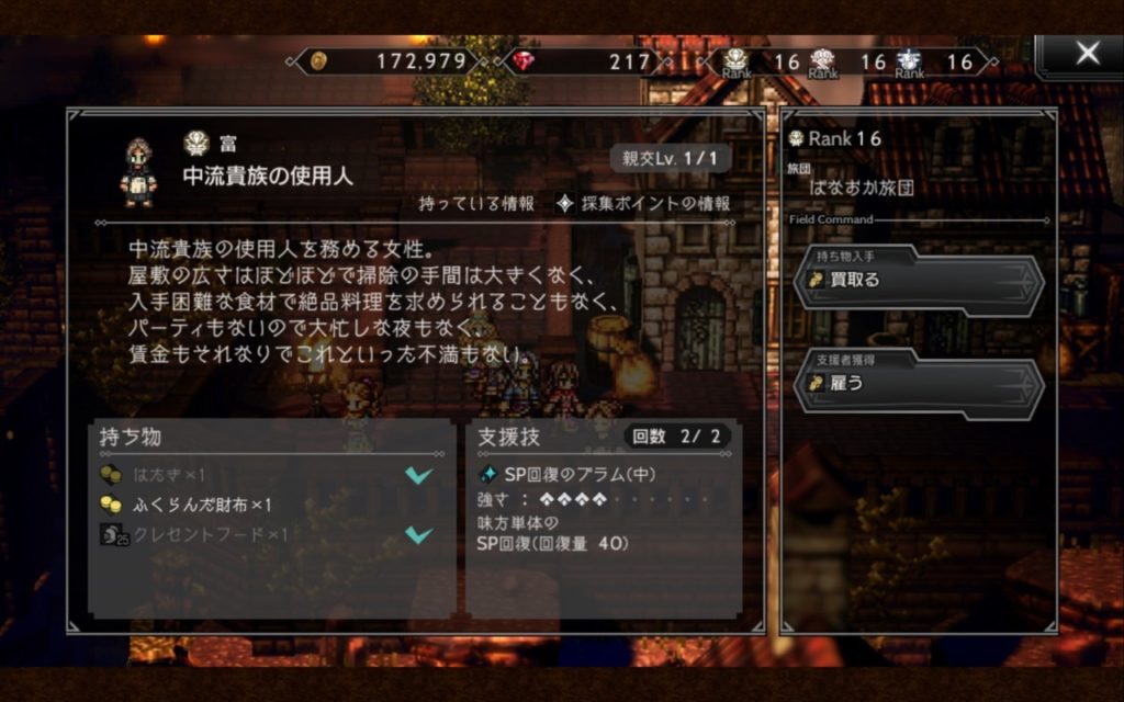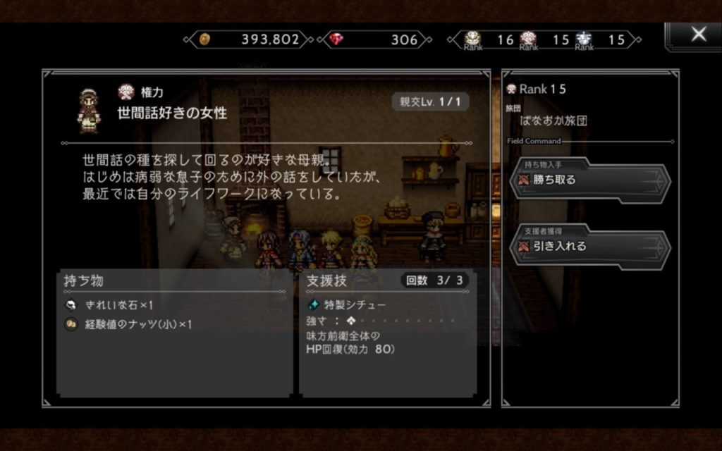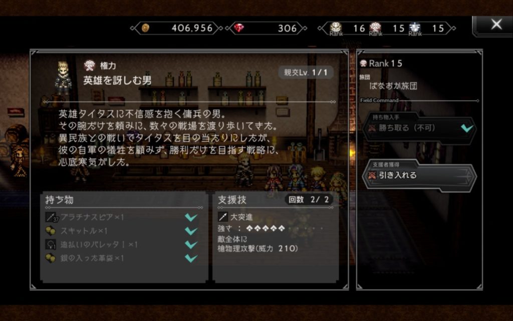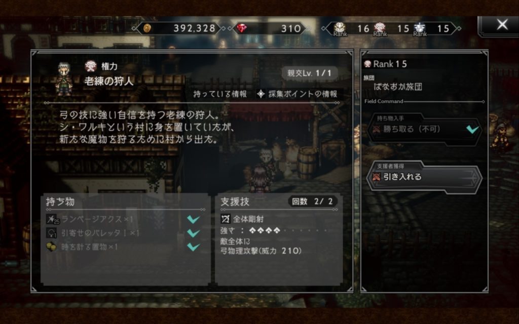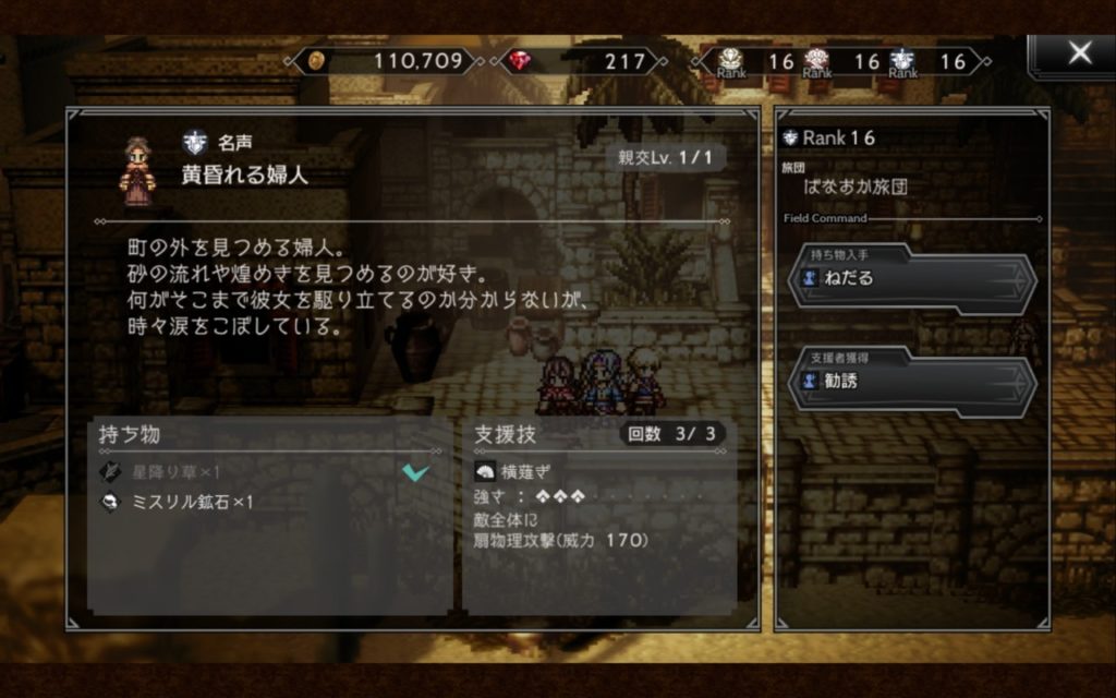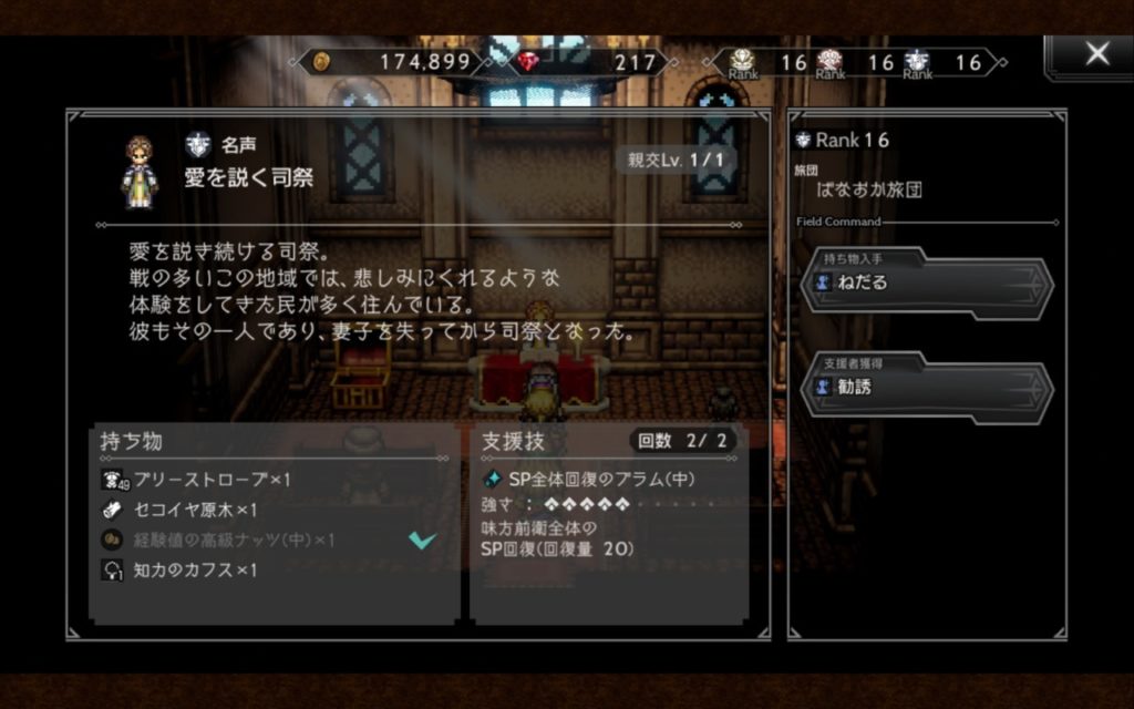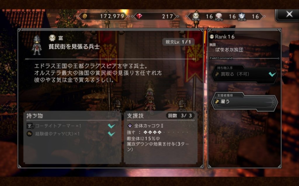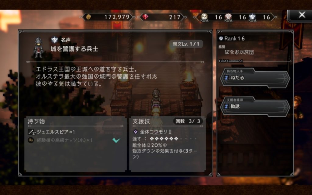 オクトパストラベラー大陸の覇者のフィールドコマンドによって
