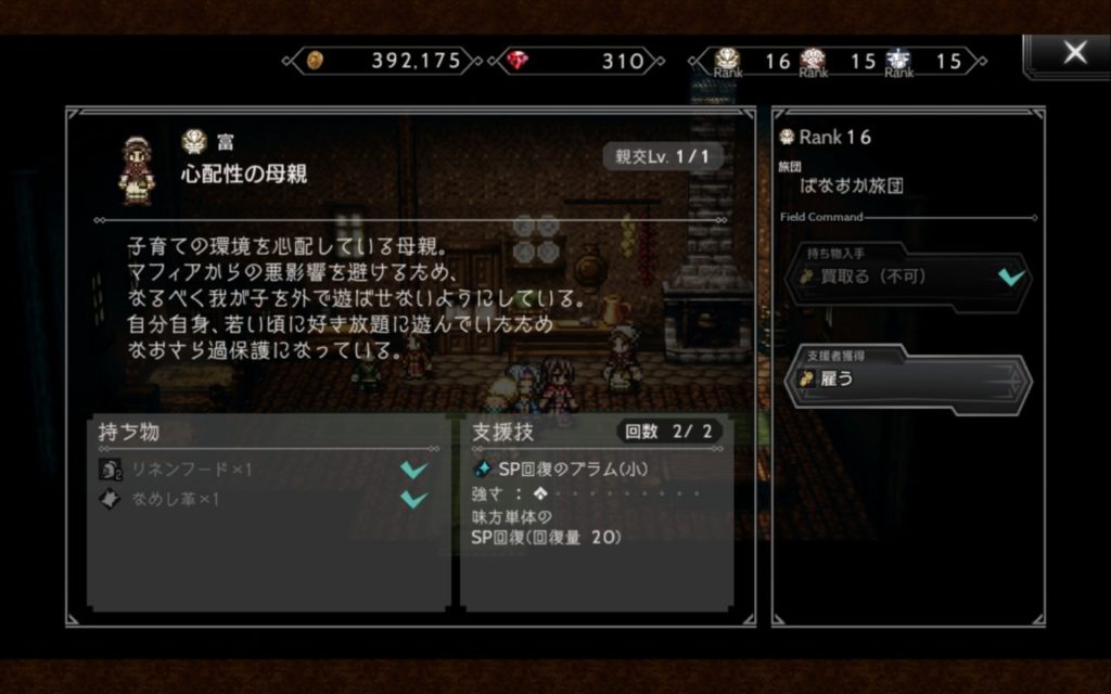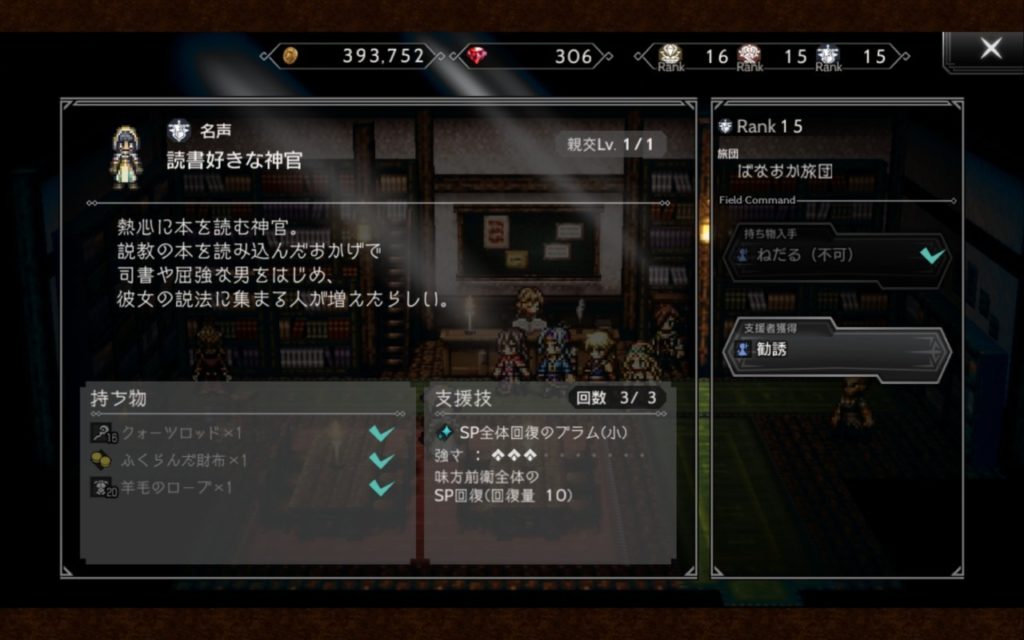 バトル時に攻撃やサポートができる支援者を連れることができます。