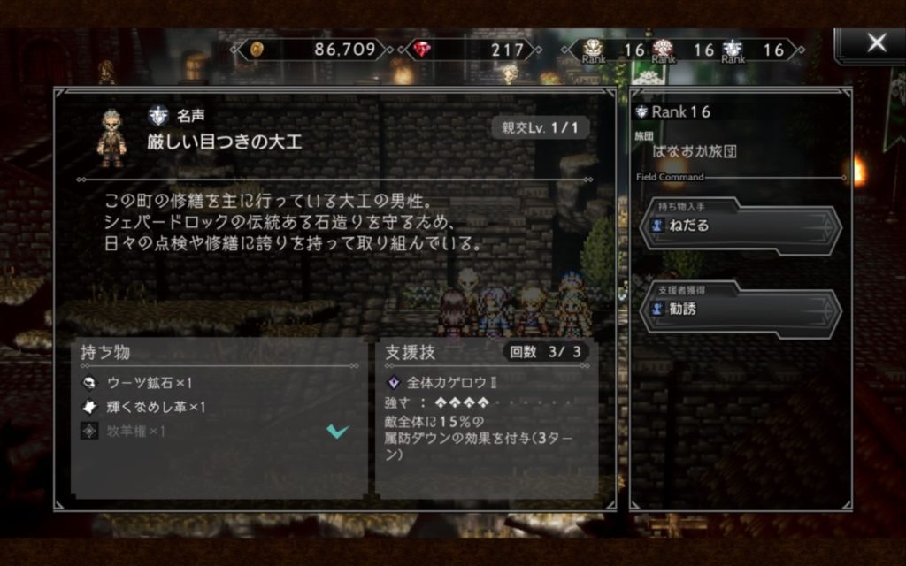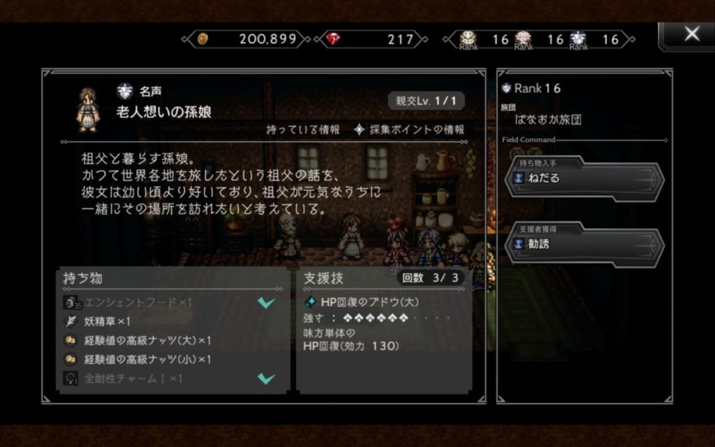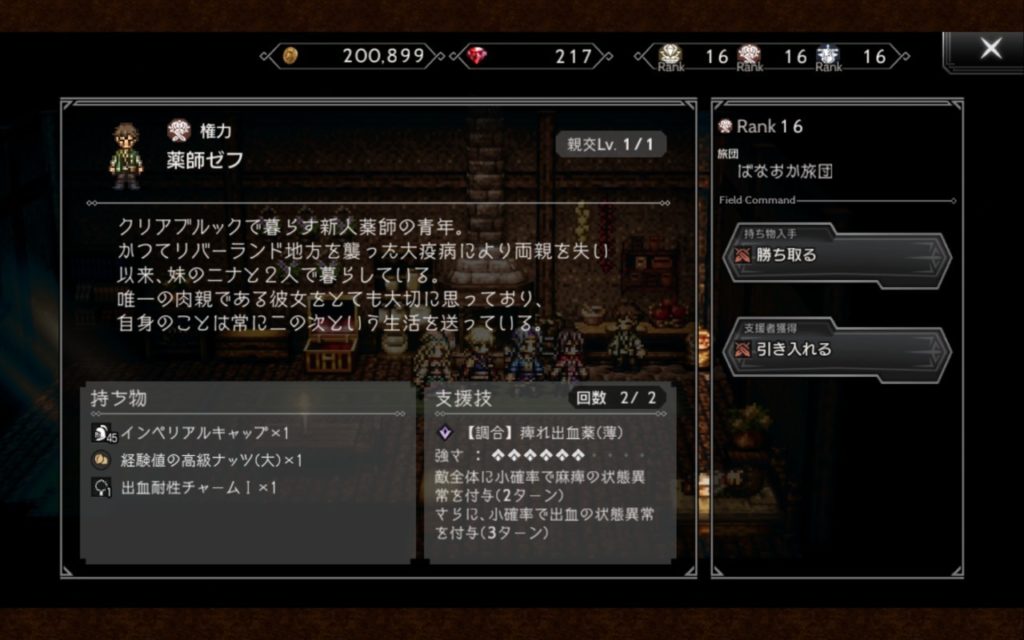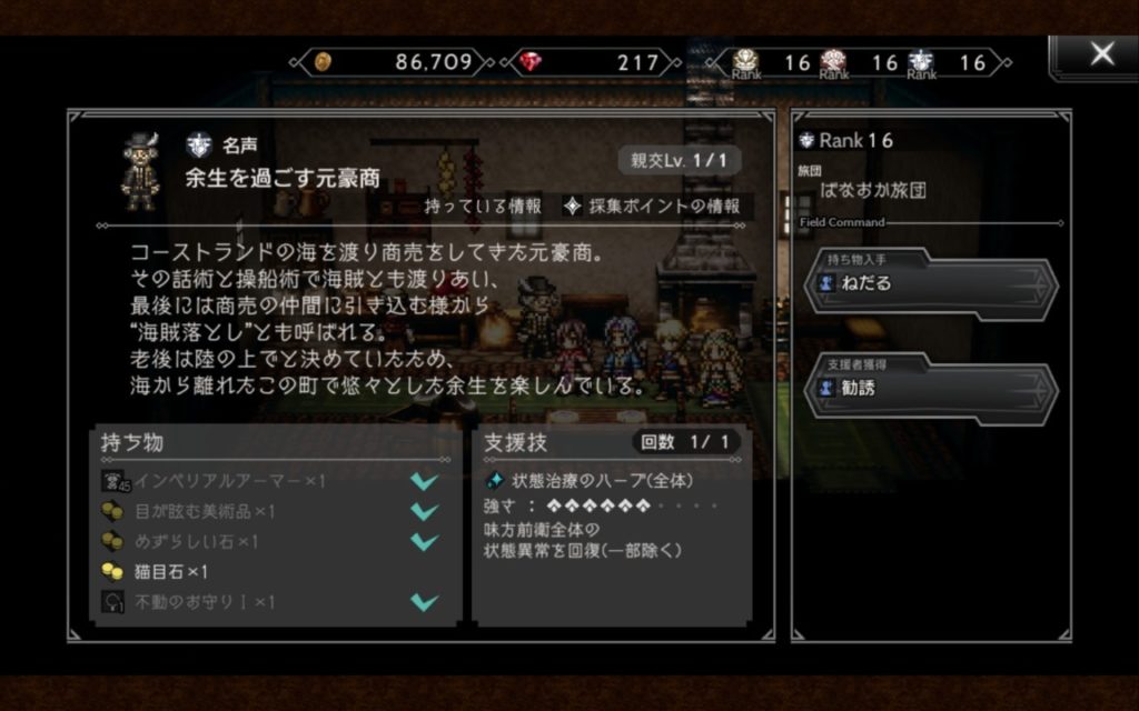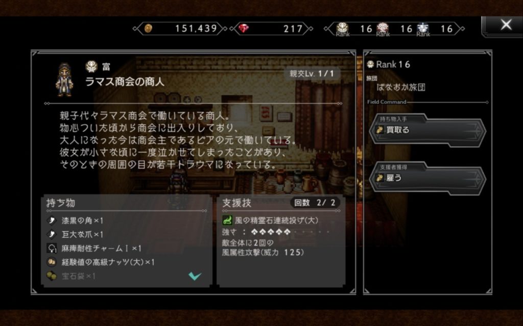 | 支援者 | 単体20%会心UP (※さらに聞き出す後の効果) ![]() |