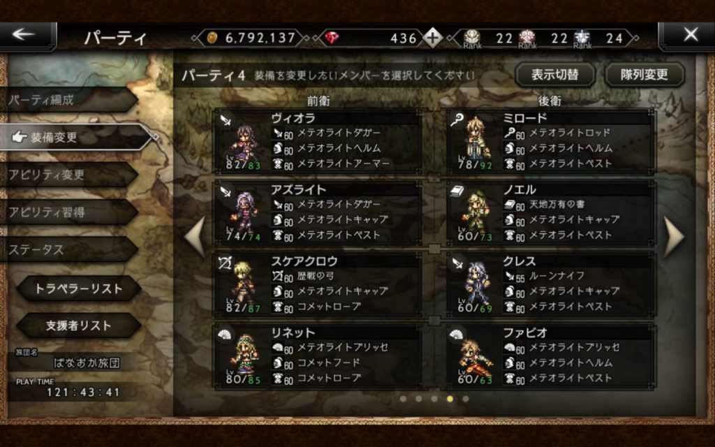 基本的に星4キャラも60まで上げてレベル60の装備「メテオライトシリーズ」をメインに装備していました。