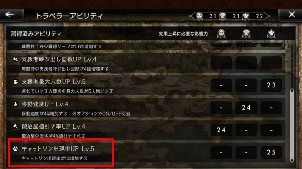 名声の影響力を上げることでキャットリンとの遭遇率を上げます。